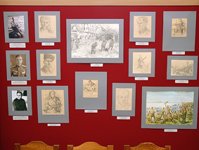 На отдельном стенде рисунки художников-фронтовиков П.М.Гречишкина, К.Г.